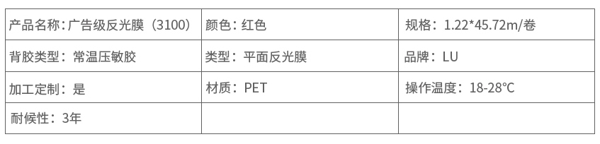 利用玻璃珠技术,微棱镜技术、合成树脂技术,薄膜技术和涂敷技术和微复制技术制成,是一种已制成薄膜可直接应用的逆反射材料,也是应用较为广泛的一种逆反射材料。抗拉性强、不易撕裂、耐磨、耐刮、耐撞击、耐冲洗,耐低温、耐汽油、柔韧性好、电脑刻画容易、施工简单方便,独特设计的背胶具有强度大、不腐蚀漆面的特点,产品具有较强的反光性能,良好的广角性能。